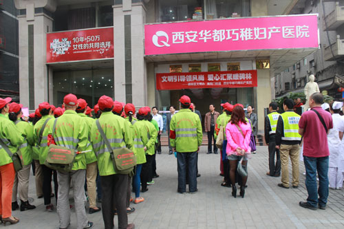 西安华都妇产医院一直关注社会惠民事业,我们不是简单地赠予者而是爱的传递者,希望通过企业的努力,关爱社会、关爱文明交通引导员。西安华都妇产医院为南院门文明引导员中队,提供了爱心体检套餐、随后的日子里又相继赠送了制服、挎包。西安华都妇产医院为各位文明交通引导员做出呼吁,为他们长期提供休息场所,无条件长期提供饮用水。文明交通引导员在关爱社会的同时,西安华都妇产医院也在关爱他们的健康。